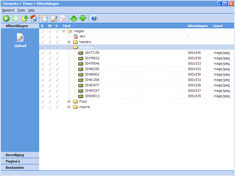- In het uploadscherm van Siteworks staan nu de afbeeldingen die u wilt
