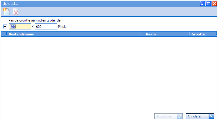 icoon om de map met de afbeelding(en) op uw computer te openen. Zoek en selecteer (aanklikken) de afbeelding die u wilt gaan uploaden. Indien u meerdere afbeeldingen ineens wilt gaan uploaden kunt u tijdens het selecteren van de afbeeldingen de ctrl toets ingedrukt houden.